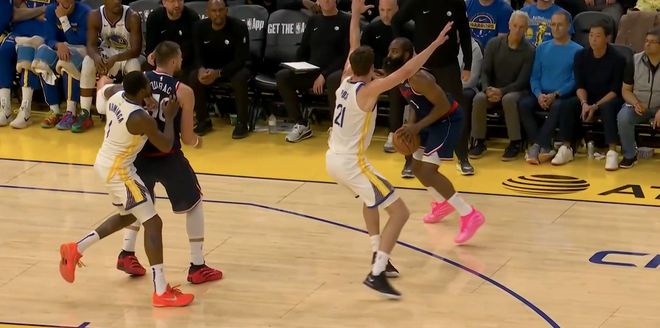 判若两人!哈登上半场20分+下半场0分 全场仅1助 快船完败给勇士